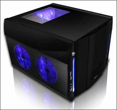 Чем же примечателен этот малыш с габаритами 368 х 278,2 х 421,2 мм и весом 9,2 кг? Ну, во-первых, в корпусе реализована совместимость с материнскими платами формата Micro ATX, а также мощными графическими адаптерами, как, например, NVIDIA GeForce 8800 GTX. Во-вторых, допускается установка до пяти 120-мм вентиляторов и использование блока питания мощностью от 500 до 700 Вт. И, наконец, в-третьих, изделие оборудовано двумя 5,25-дюймовыми (оба внешние) и четырьмя 3,5-дюймовыми (один внешний) отсеками, снабжено четырьмя слотами расширения и имеет один порт eSATA, два порта USB 2.0, аудиовыход и гнездо для подключения микрофона.